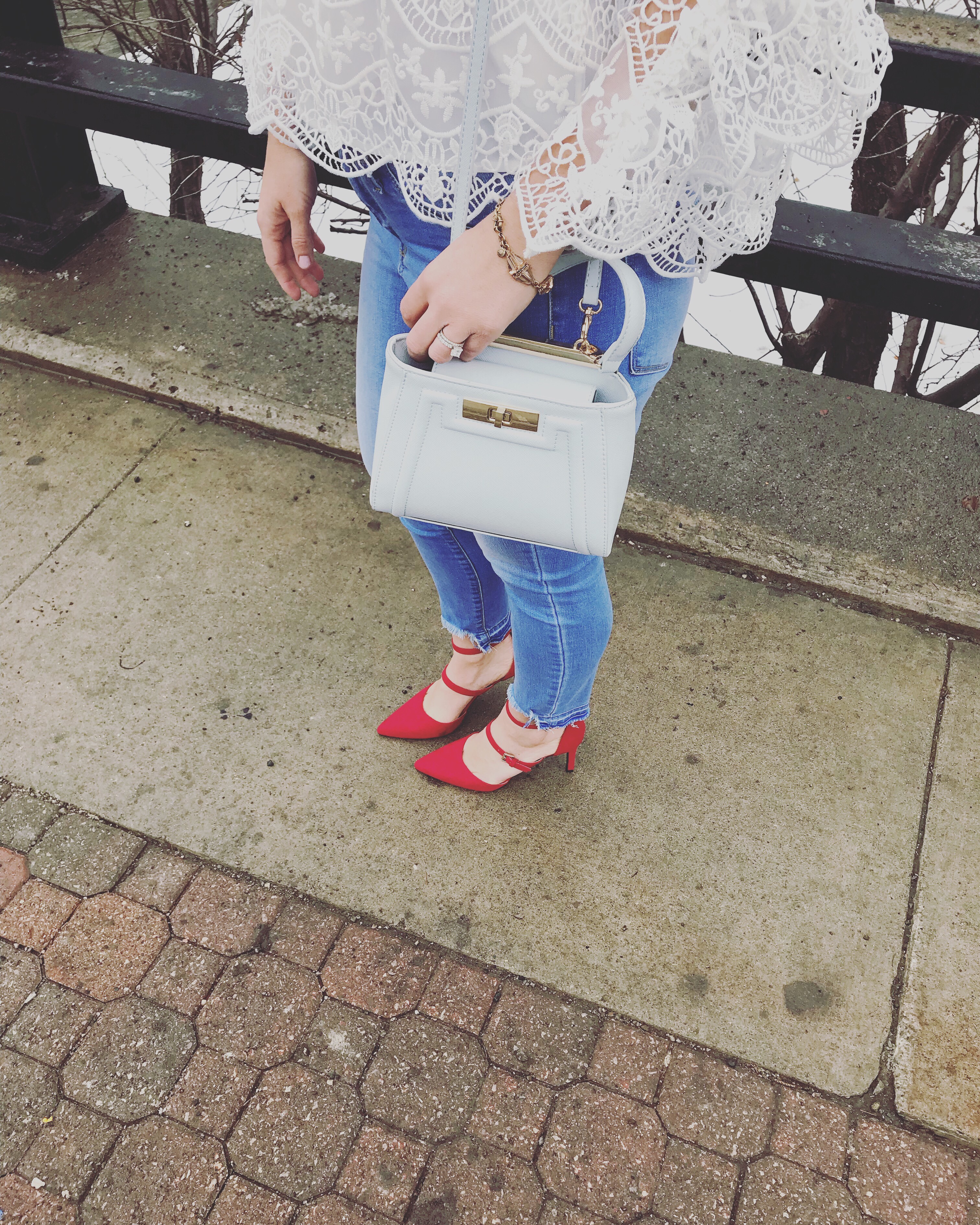 This outfit combination is one of my favorites! It’s so romantic. The lace detail and ruffle trim on the top are gorgeous.